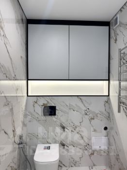Сан узел выполнен из широкоформатной плитки 60*120