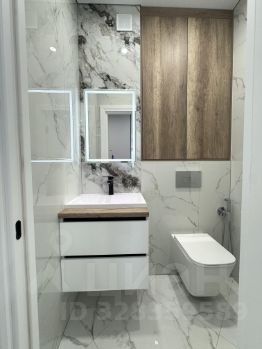 Санузел выполнен из широкоформатной плитки 60*120
