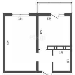 Квартира обладает четкой и практичной планировкой: изолированная жилая комната 27 м², просторная кухня 10 м² и совмещенный санузел.
