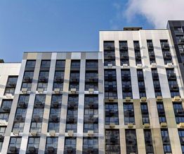 Проект представляет собой 4-секционный дом переменной этажности от 12 до 18 этажей. В облицовке фасада используются тщательно подобранные композитные алюминиевые панели 18 оттенков, формирующие динамичный неповторимый визуальный облик здания. Для сохранения рисунка фасада будут установлены корзины для кондиционеров для каждой комнаты. С верхних этажей в квартирах, которые выходят на Краснознаменную, открывается вид на водохранилище.
