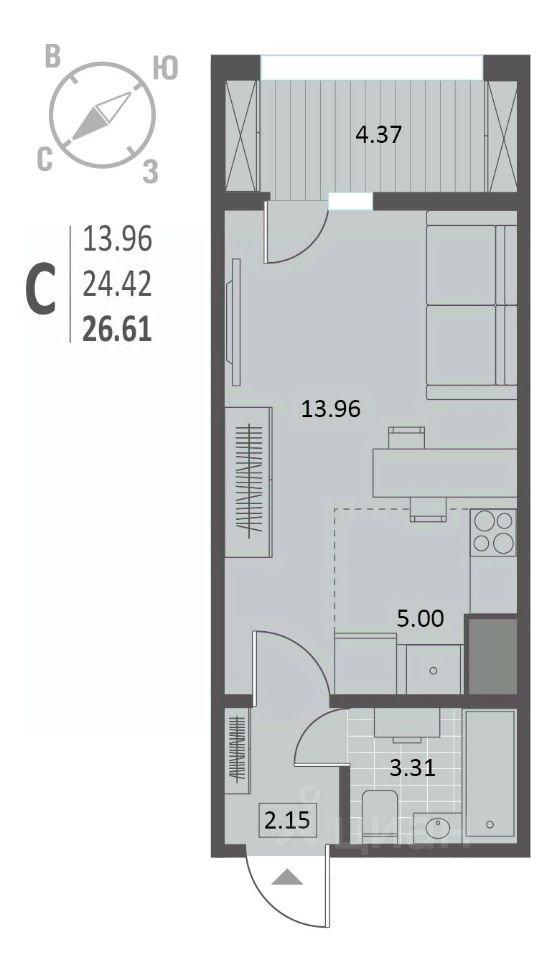 Продаётся студия в сданном доме (Краснознамённая, 72), срок сдачи: IV-кв. 2025, общей площадью 26.61 кв.м., на 9 этаже. Жилой комплекс расположен в Ленинском районе Воронежа, в 5 минутах от Цирка, на пересечении улиц Краснознаменная и Чапаева. В шаговой доступности школа и детские сады, а на первом этаже жилого дома предусмотрено помещение под продуктовый супермаркет и другие коммерческие площади.