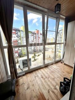 В квартире есть застеклённый балкон, где можно устроить зону отдыха.