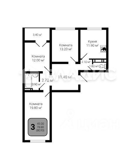 78.4 м2 уютного пространства для большой семьи.