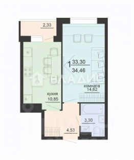 - В прихожей предусмотрено место под гардеробную с встроенным шкафом. Площадь кухни позволяет организовать кухнюгостиную (евроформат) с диваном, в комнате легко сделать зонирование и выделить две функциональные зоны.