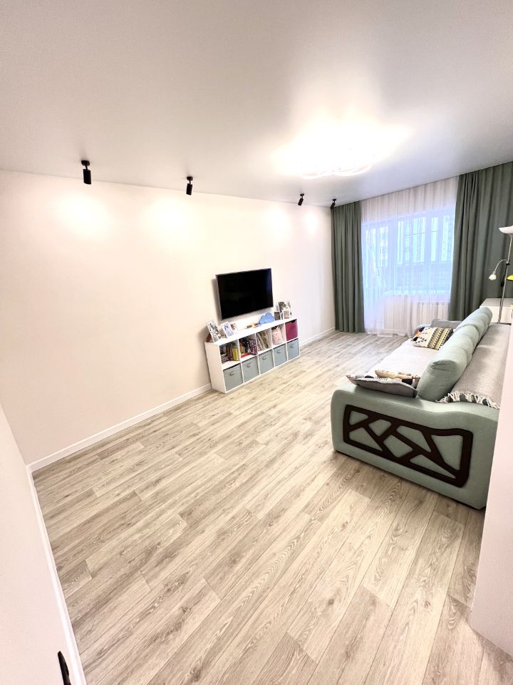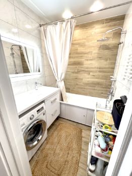 Дополнительное место хранения-встроенный шкаф-купе в коридоре, рядом с спальней. Кухня 11 м2, остается современный кухонный гарнитур с качественной фурнитурой, посудомойка, вытяжка, варочная панель, кондиционер. Гостиная 19 м2, так же есть основное освещение и есть фоновое. Из гостиной выход на остекленную лоджию, вид из окон во двор. Спальня 12 м2, удобной квадратной формы. Санузел раздельный, стены и пол облицованы современной плиткой. Качественная сантехника, в туалете есть гигиенический душ. Теплые полы в отопительный период за счет разводки отопления под стяжкой пола. Чистый и светлый подьезд, 2 лифта (грузовой и пассажирский), культурные соседи.