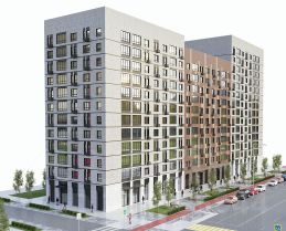 В "Ленинградском квартале" будут построены дома переменной этажности, от 6 до 16 этажей, это позволит сформировать динамичный силуэт застройки. Ровные фасады без выделения лоджий и балконов являются современным сложившимся архитектурным трендом, а использование долговечных и качественных фасадных материалов создаст приятный с визуальной и эстетической точки зрения фасад.