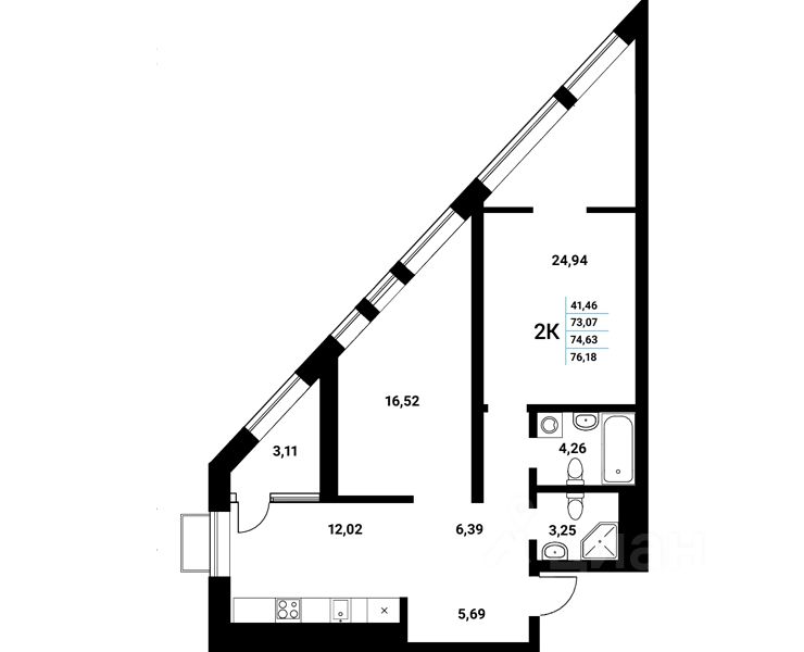 Продаётся 2-комнатная квартира в сданном доме (Чуева, 7 (2 этап) ), срок сдачи: III-кв. 2025, общей площадью 74.63 кв.м., на 4 этаже. Новый жилой комплекс "Z-town" от Специализированного застройщика "Новый Код" расположен на набережной Чуева в г. Воронеж.