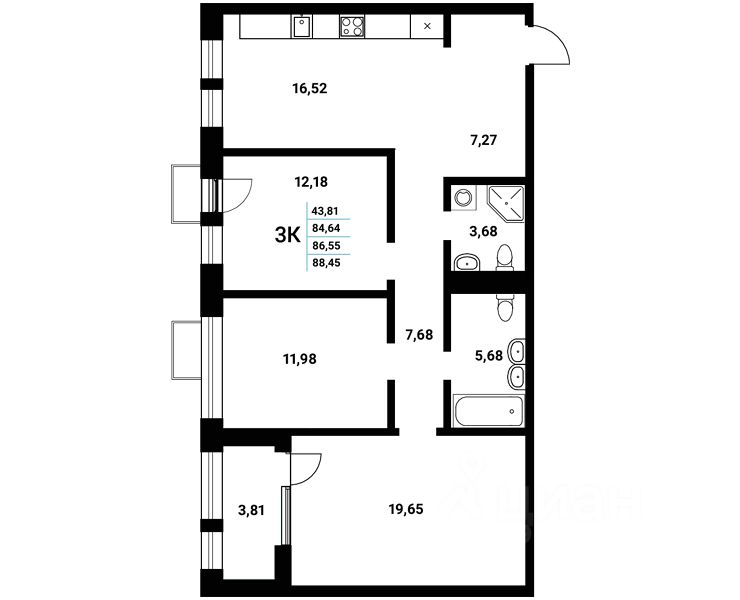 Продаётся 3-комнатная квартира в сданном доме (Чуева, 7 (2 этап) ), срок сдачи: III-кв. 2025, общей площадью 86.55 кв.м., на 10 этаже. Новый жилой комплекс "Z-town" от Специализированного застройщика "Новый Код" расположен на набережной Чуева в г. Воронеж.