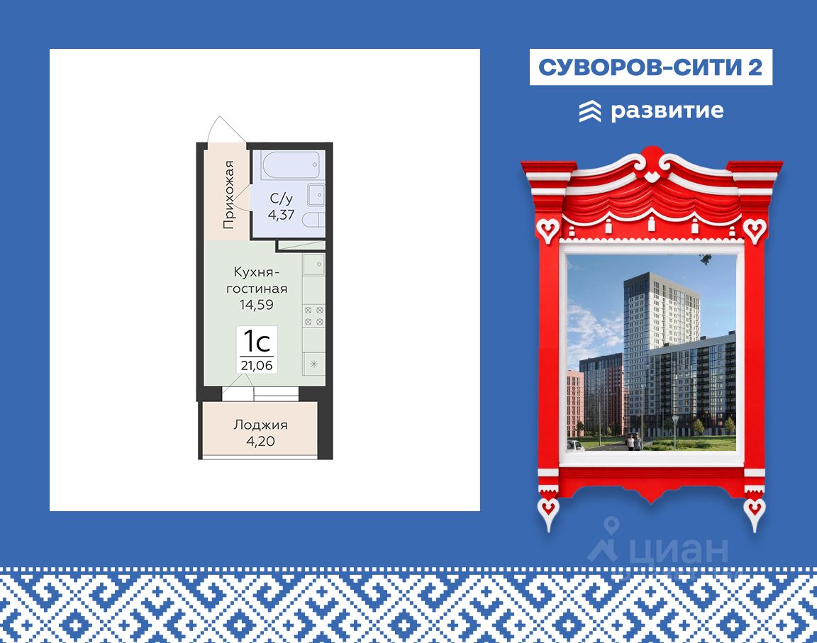 Продается студия 21,06 кв.м. на 5 этаже. Жилой комплекс "Суворов Сити II" — продолжение современного масштабного проекта "Суворов Сити", находящегося в спальном районе в четырех километрах от центра города. Проект сочетает удачное расположение с удобными планировками, актуальным дизайном и приватным двором.