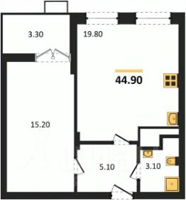 Общая площадь44,9 м²