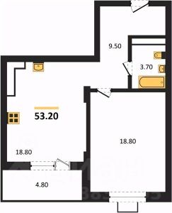 Общая площадь53,2 м²