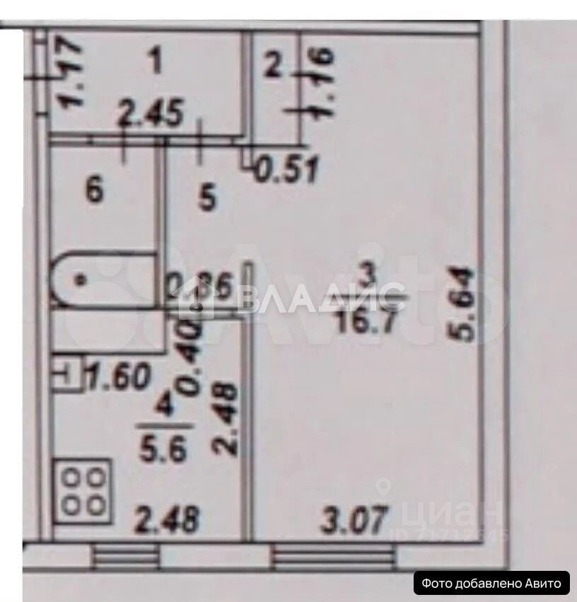 Площадь комнаты: 16,7 м² (комната).