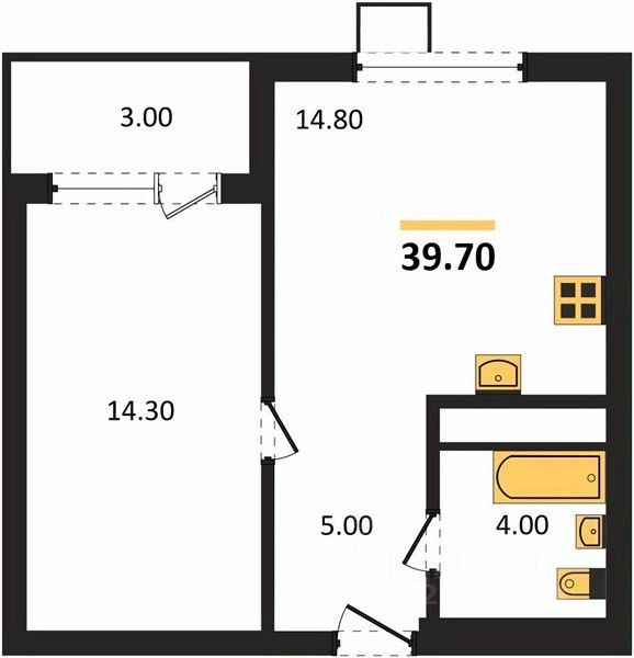 Квартира: 1 к 39,70 кв.м., 6 этаж в комплексе Ритм, 1 очередь, корп.1 (секции 1-2), сдача: 2кв. , этажей: 11, адрес Воронеж г., Содружества бул., д. 6, Застройщик: Инвестжилстрой.