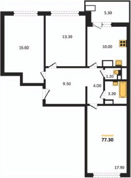 77,3 м²