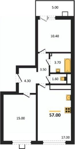 Квартира: 2 к 57,00 кв.м., 12 этаж в комплексе Ласточкино, 7 очередь, корп.23 (АI), сдача: 4кв. , этажей: 17, адрес Воронеж г., Шибилкина ул., , Застройщик: ДСК.