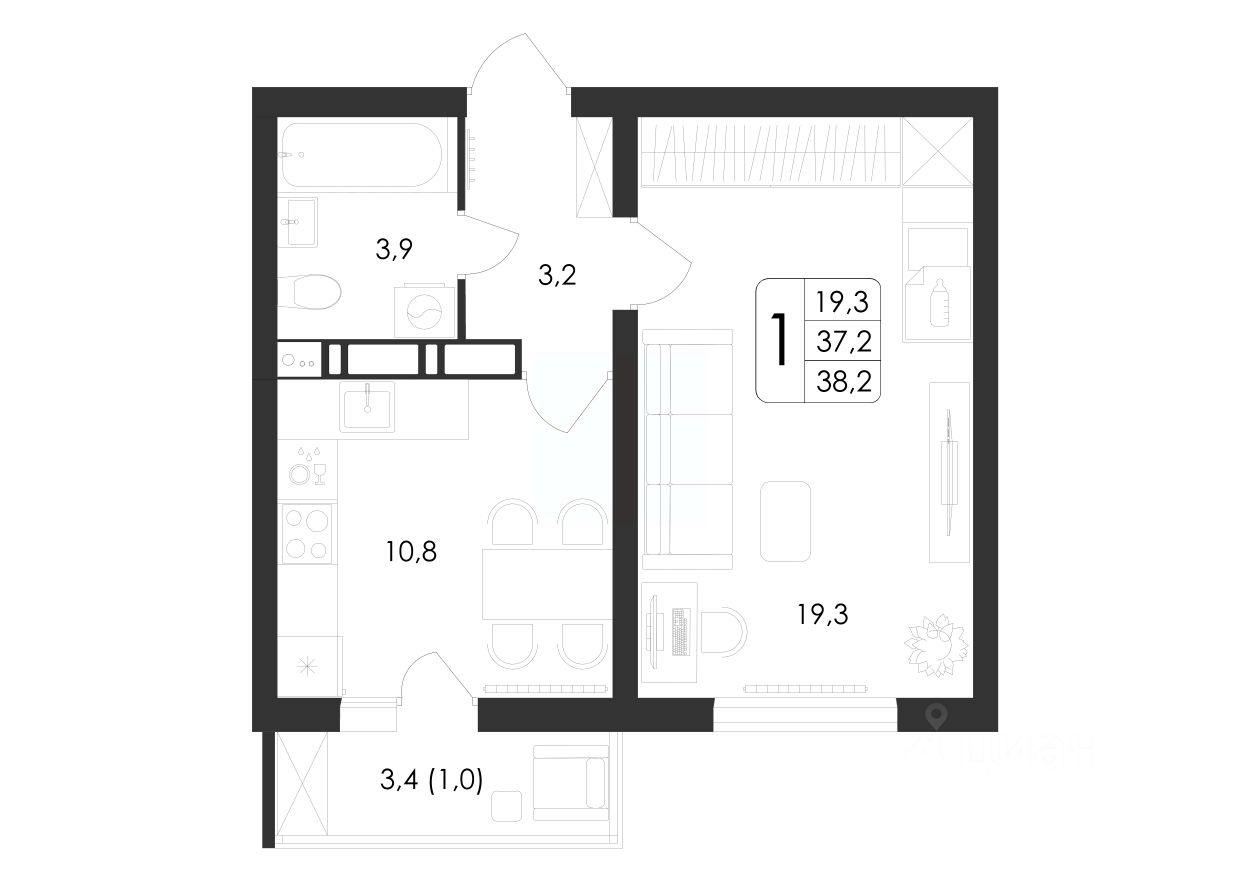 Общая площадь38,2 м²