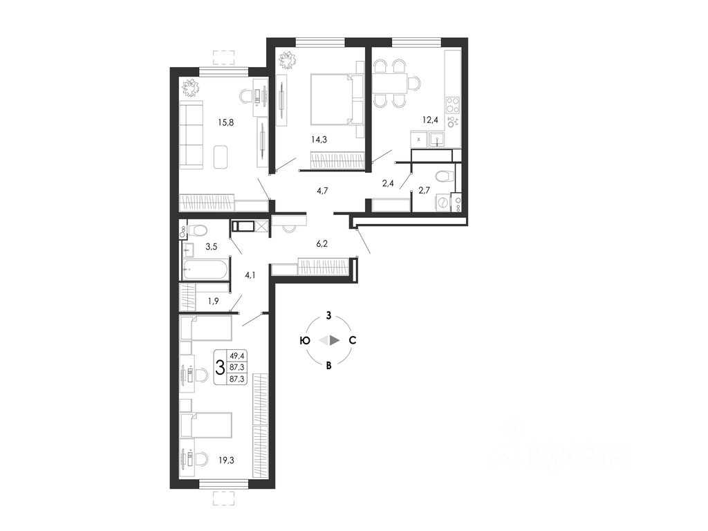 Общая площадь87,3 м²