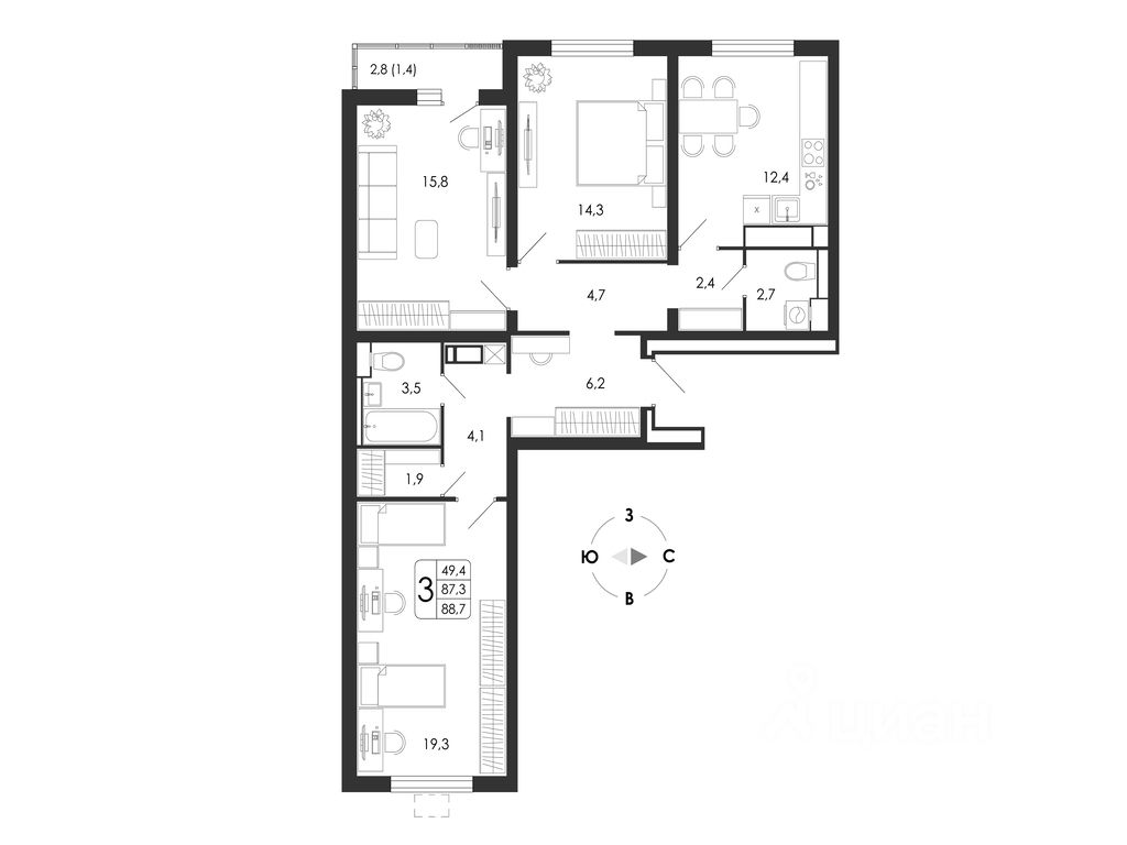 Общая площадь88,7 м²