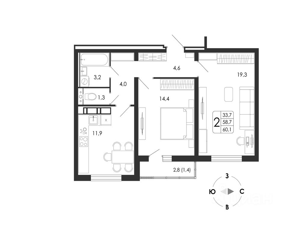Общая площадь60,1 м²
