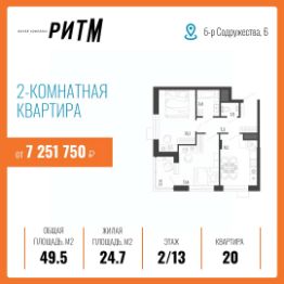 ЖК "РИТМ" — ДОСТУПНАЯ И ВЫГОДНАЯ ИНВЕСТИЦИЯ В ВАШЕ БУДУЩЕЕ Жилой комплекс "Ритм" по ул. Бульвар Содружества уч. 6 — часть масштабного проекта развития территории воронежского левобережья — микрорайона "Ключи", который займет 28,6 га недалеко от въезда в город по тамбовскому направлению. Здесь строится инновационный красивый мини-город. Он насыщен социальной и коммерческой инфраструктурой и обеспечен новейшими коммуникациями. Комплекс состоит не только из качественных домов. Решения по благоустройству стимулируют ведение активного здорового образа жизни. Продуманы возможности для взаимодействия людей, их творческой самореализации, выстраивания добрососедских связей и формирования современного приятного комьюнити. И все это на благоприятном экологическом фоне. Это действительно новый шаг в создании привлекательной среды для жизни в современном ритме! Жить, не ограничивая себя и свою семью, — разве не об этом вы мечтали? Вас ждет инновационное пространство, где вы будете вести свою насыщенную и интересную жизнь в выбранном вами ритме. Подземный паркинг на -1 этаже вместимостью на 114 машино-места, в том числе семейные парковки на два автомобиля освобождает двор от машин — там гораздо приятнее гулять с детьми или заниматься спортом. Жители смогут выходить к своему автомобилю в теплый паркинг прямо из лифта — нет беспокойства из-за погодных условий или за сохранность транспортного средства. Ваши гости тоже не останутся без парковки — на придомовой территории организовано - 131 место и вне придомовой территории - 213 мест. Для абсолютного комфорта на -1 этаже в каждой секции расположены кладовые помещение площадью от 2,10 до 5,0 кв.м., где можно хранить все что угодно — велосипеды, санки, лыжи и прочие вещи. Они больше не будут занимать весь балкон. Там гораздо приятнее пить кофе и любоваться видом из окна. ИНФРАСТРУКТУРА и ПРЕИМУЩЕСТВА Инновационное жилье в ЖК "Ритм" совсем рядом — 5 минут до Остужевского кольца, 20 минут до центра, рядом новая транспортная развязка. Легко добраться до работы и вузов, на концерт или в гости. Первый цифровой квартал в городе Дворы без машин Подземный паркинг и кладовые (в каждой секции) Сервисная Управляющая Компания (Smile) Новая инфраструктура района и коммуникаций Рядом с вами: новая уже действующая школа - 3 минут (просто перейти дорогу) новый детский сад (проект на стадии разработки, ориентировочный срок сдачи конец 2026 года) - 5 минут (просто перейти дорогу) 5 минут от центральной площади событий и прогулочных аллей стадион и спортивные площадки поликлиника (проект на стадии разработки) магазины аптеки детские площадки