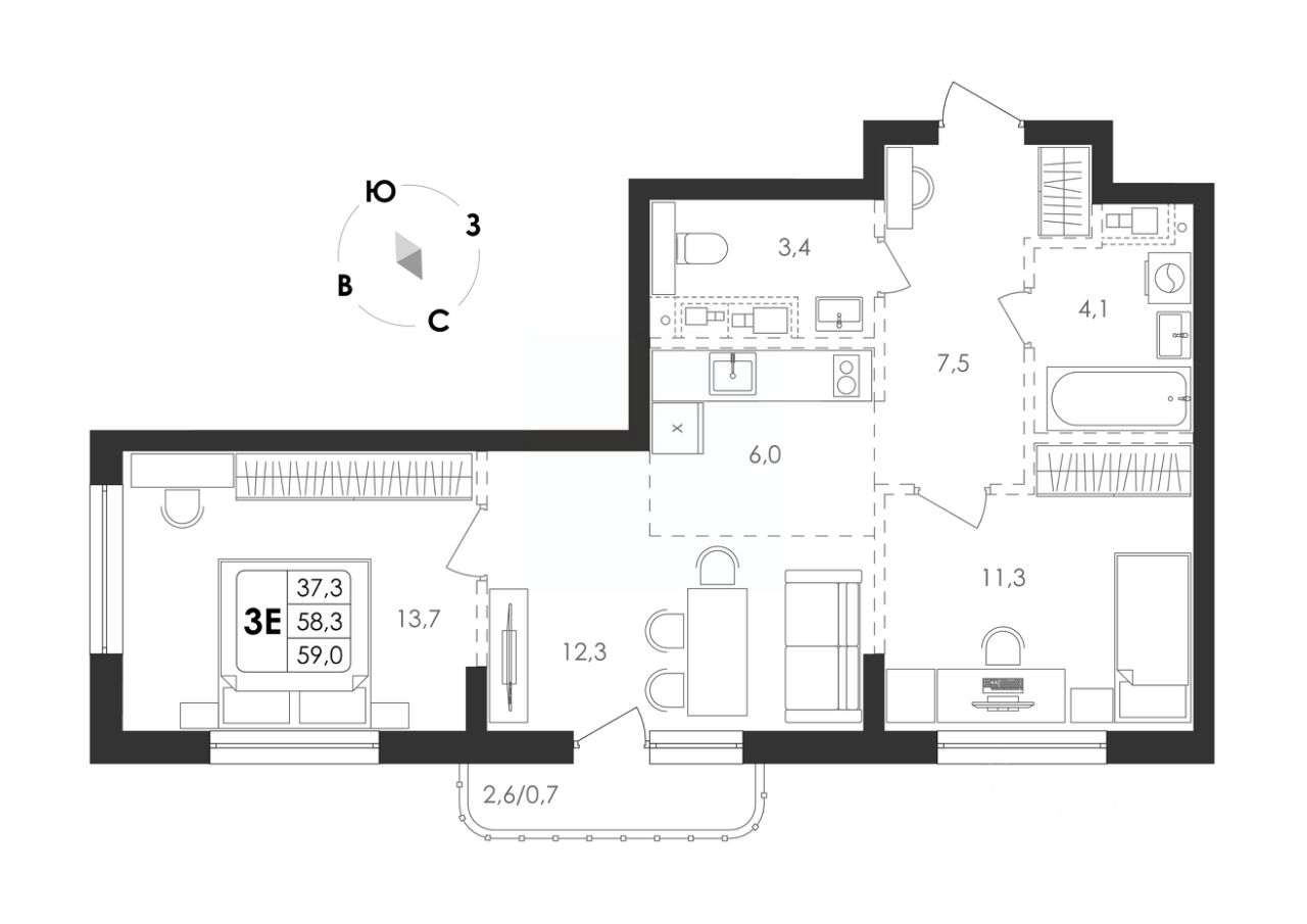 Общая площадь59 м²