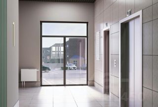 - Входы в подъезды с панорамным остеклением, расположены на уровне земли