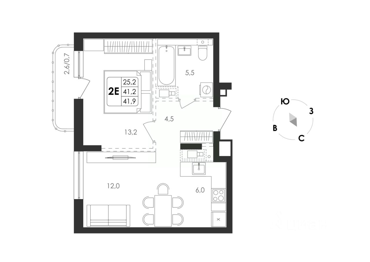 Общая площадь41,9 м²