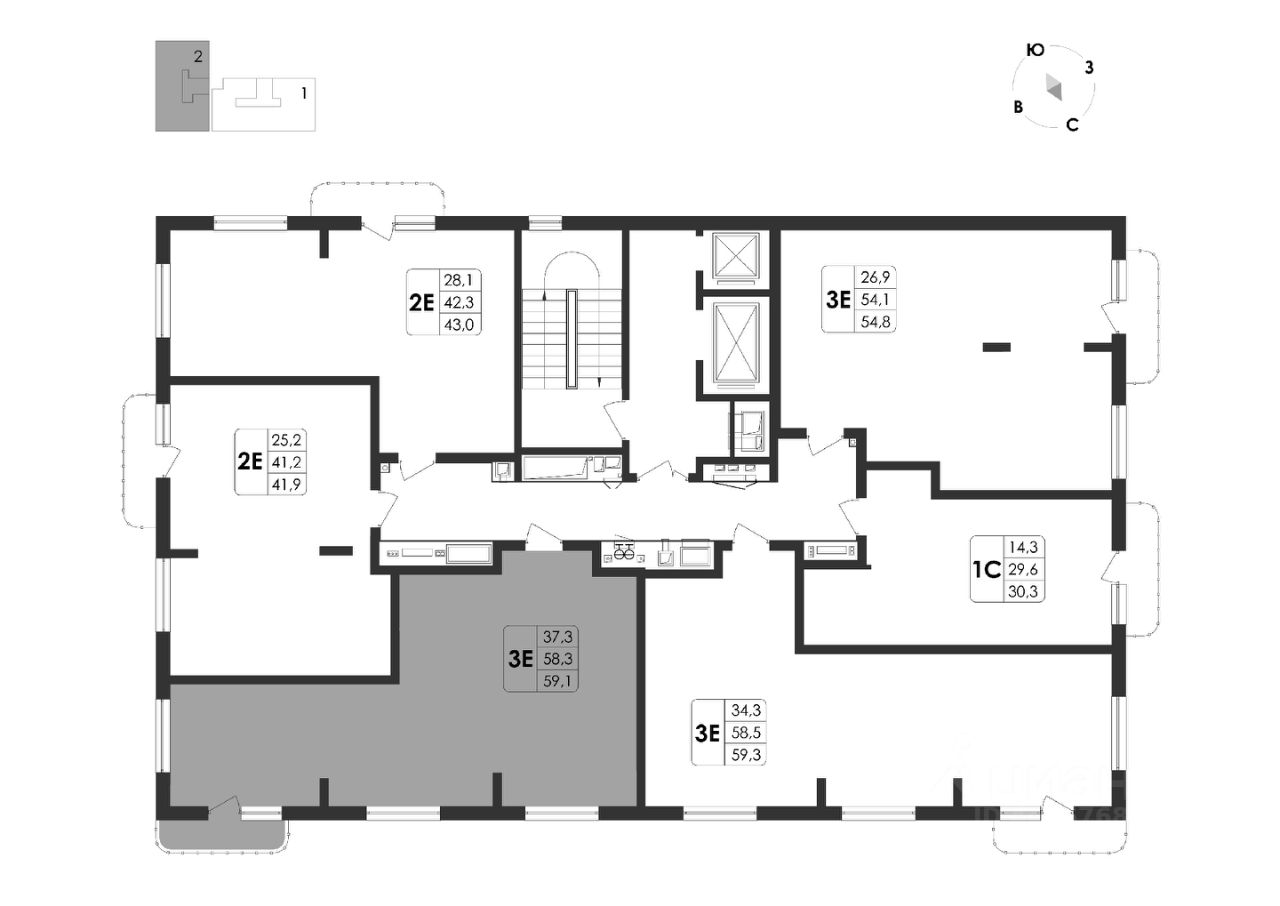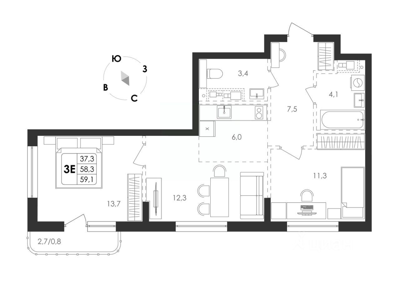 Общая площадь59,1 м²
