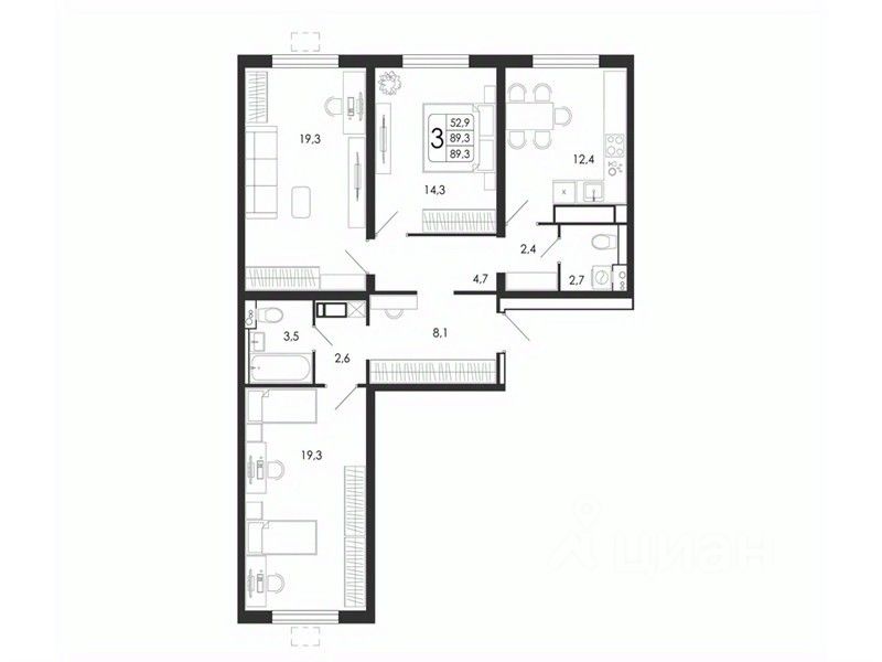 Квартира: 3 к 89,30 кв.м., 2 этаж в комплексе Яблоневые сады, 1 очередь, корп.15.2, сдача: 4кв. , этажей: 17, адрес Воронеж г., Загоровского ул., , Застройщик: ВЫБОР.