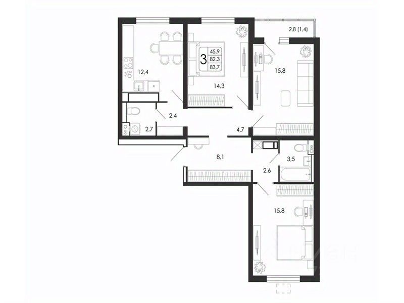 83,7 м²