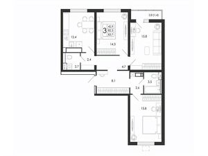 Квартира: 3 к 83,70 кв.м., 5 этаж в комплексе Яблоневые сады, 1 очередь, корп.15.2, сдача: 4кв. , этажей: 17, адрес Воронеж г., Загоровского ул., , Застройщик: ВЫБОР.