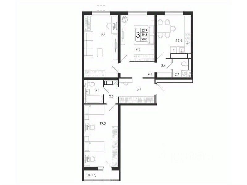 90,8 м²