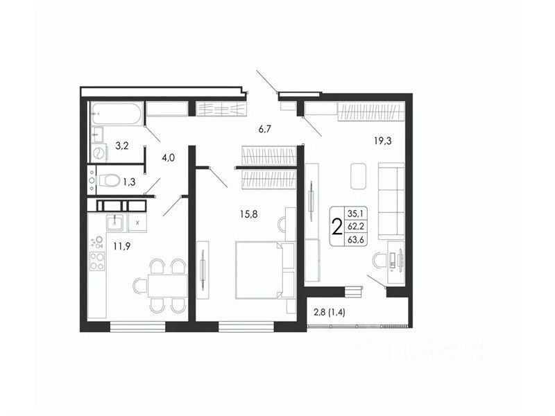 Квартира: 2 к 63,60 кв.м., 8 этаж в комплексе Яблоневые сады, 1 очередь, корп.15.2, сдача: 4кв. , этажей: 17, адрес Воронеж г., Загоровского ул., , Застройщик: ВЫБОР.