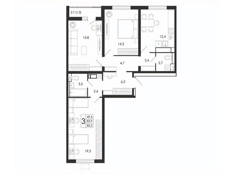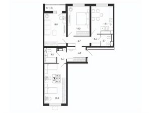 Квартира: 3 к 85,20 кв.м., 8 этаж в комплексе Яблоневые сады, 1 очередь, корп.15.2, сдача: 4кв. , этажей: 17, адрес Воронеж г., Загоровского ул., , Застройщик: ВЫБОР.