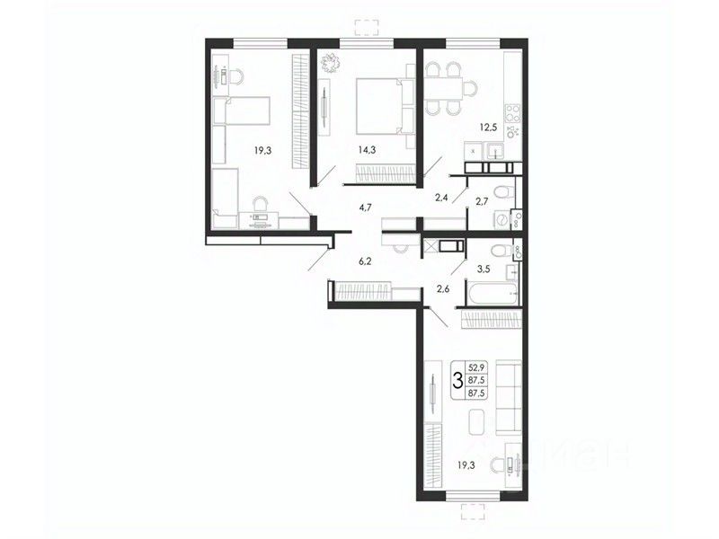 Квартира: 3 к 87,50 кв.м., 2 этаж в комплексе Яблоневые сады, 1 очередь, корп.15.2, сдача: 4кв. , этажей: 17, адрес Воронеж г., Загоровского ул., , Застройщик: ВЫБОР.