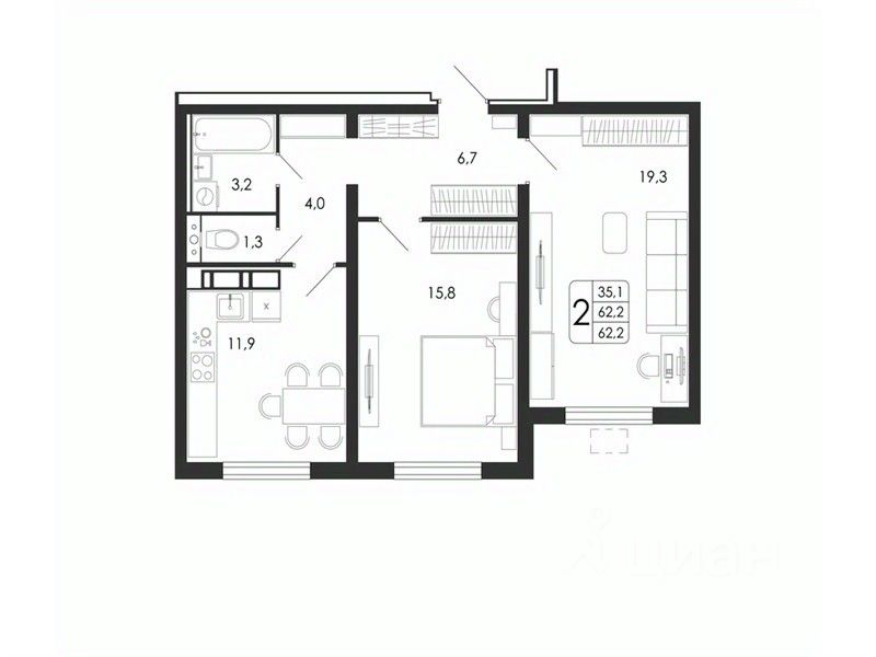 Квартира: 2 к 62,20 кв.м., 3 этаж в комплексе Яблоневые сады, 1 очередь, корп.15.2, сдача: 4кв. , этажей: 17, адрес Воронеж г., Загоровского ул., , Застройщик: ВЫБОР.