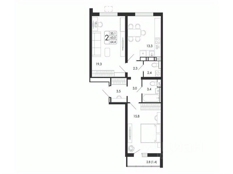 Квартира: 2 к 64,40 кв.м., 15 этаж в комплексе Яблоневые сады, 1 очередь, корп.15.2, сдача: 4кв. , этажей: 17, адрес Воронеж г., Загоровского ул., , Застройщик: ВЫБОР.