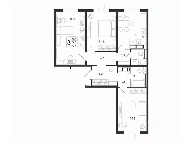 Квартира: 3 к 84,00 кв.м., 2 этаж в комплексе Яблоневые сады, 1 очередь, корп.15.2, сдача: 4кв. , этажей: 17, адрес Воронеж г., Загоровского ул., , Застройщик: ВЫБОР.