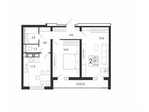 61,6 м²
