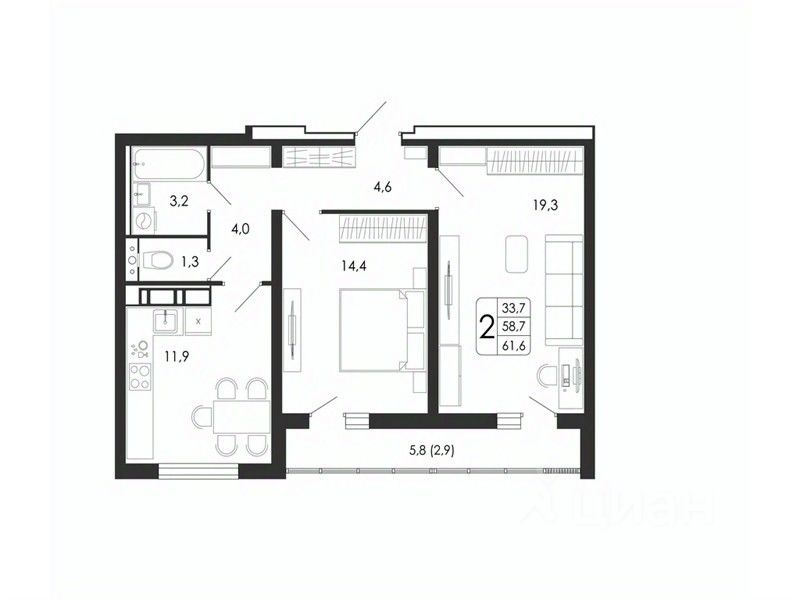Квартира: 2 к 61,60 кв.м., 10 этаж в комплексе Яблоневые сады, 1 очередь, корп.15.2, сдача: 4кв. , этажей: 17, адрес Воронеж г., Загоровского ул., , Застройщик: ВЫБОР.