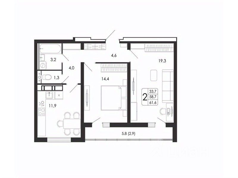 Квартира: 2 к 61,60 кв.м., 13 этаж в комплексе Яблоневые сады, 1 очередь, корп.15.2, сдача: 4кв. , этажей: 17, адрес Воронеж г., Загоровского ул., , Застройщик: ВЫБОР.