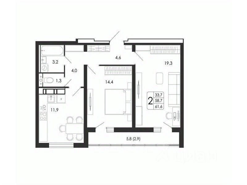 33,7 м²