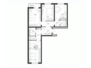 Квартира: 3 к 88,70 кв.м., 4 этаж в комплексе Яблоневые сады, 1 очередь, корп.15.2, сдача: 4кв. , этажей: 17, адрес Воронеж г., Загоровского ул., , Застройщик: ВЫБОР.