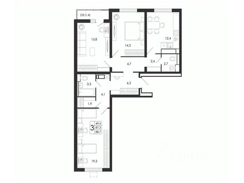 Квартира: 3 к 88,70 кв.м., 6 этаж в комплексе Яблоневые сады, 1 очередь, корп.15.2, сдача: 4кв. , этажей: 17, адрес Воронеж г., Загоровского ул., , Застройщик: ВЫБОР.