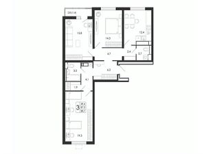 Квартира: 3 к 88,70 кв.м., 7 этаж в комплексе Яблоневые сады, 1 очередь, корп.15.2, сдача: 4кв. , этажей: 17, адрес Воронеж г., Загоровского ул., , Застройщик: ВЫБОР.