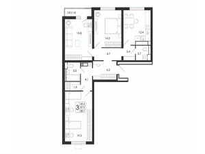 Квартира: 3 к 88,70 кв.м., 10 этаж в комплексе Яблоневые сады, 1 очередь, корп.15.2, сдача: 4кв. , этажей: 17, адрес Воронеж г., Загоровского ул., , Застройщик: ВЫБОР.