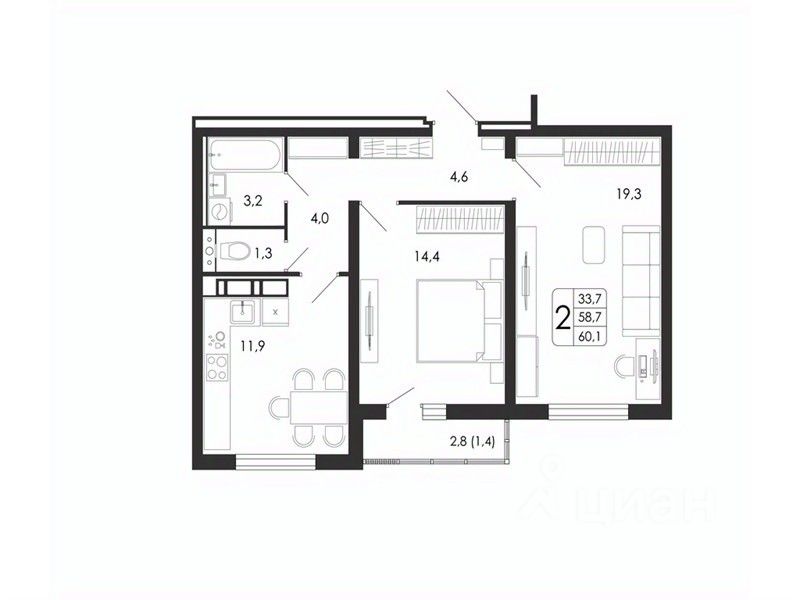 Квартира: 2 к 60,10 кв.м., 12 этаж в комплексе Яблоневые сады, 1 очередь, корп.15.2, сдача: 4кв. , этажей: 17, адрес Воронеж г., Загоровского ул., , Застройщик: ВЫБОР.