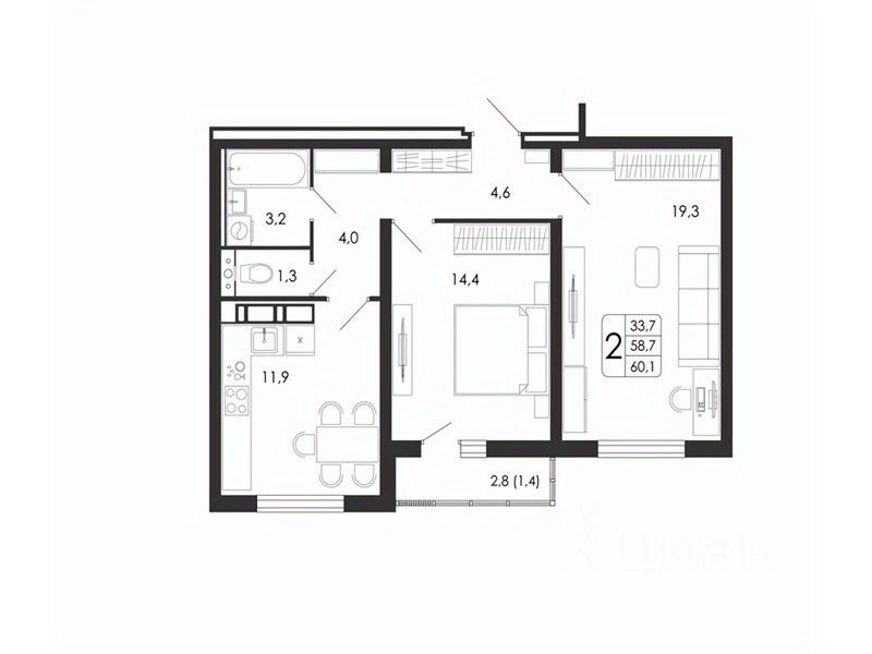 Квартира: 2 к 60,10 кв.м., 15 этаж в комплексе Яблоневые сады, 1 очередь, корп.15.2, сдача: 4кв. , этажей: 17, адрес Воронеж г., Загоровского ул., , Застройщик: ВЫБОР.