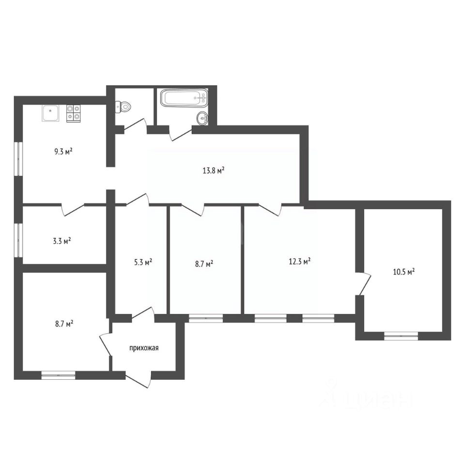 Оптимальная планировка с изолированными спальнями и огромным холлом 30м2, раздельный санузел. Высокие потолки.