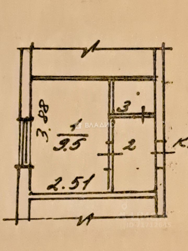 9,5 кв. м — жилая площадь, кухня 3 кв.м. Окна выходят во двор, а в доме есть наземная парковка.